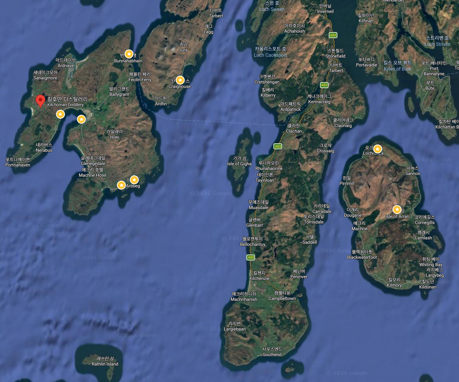 구글 지도: 킬호만 Kilchoman 증류소